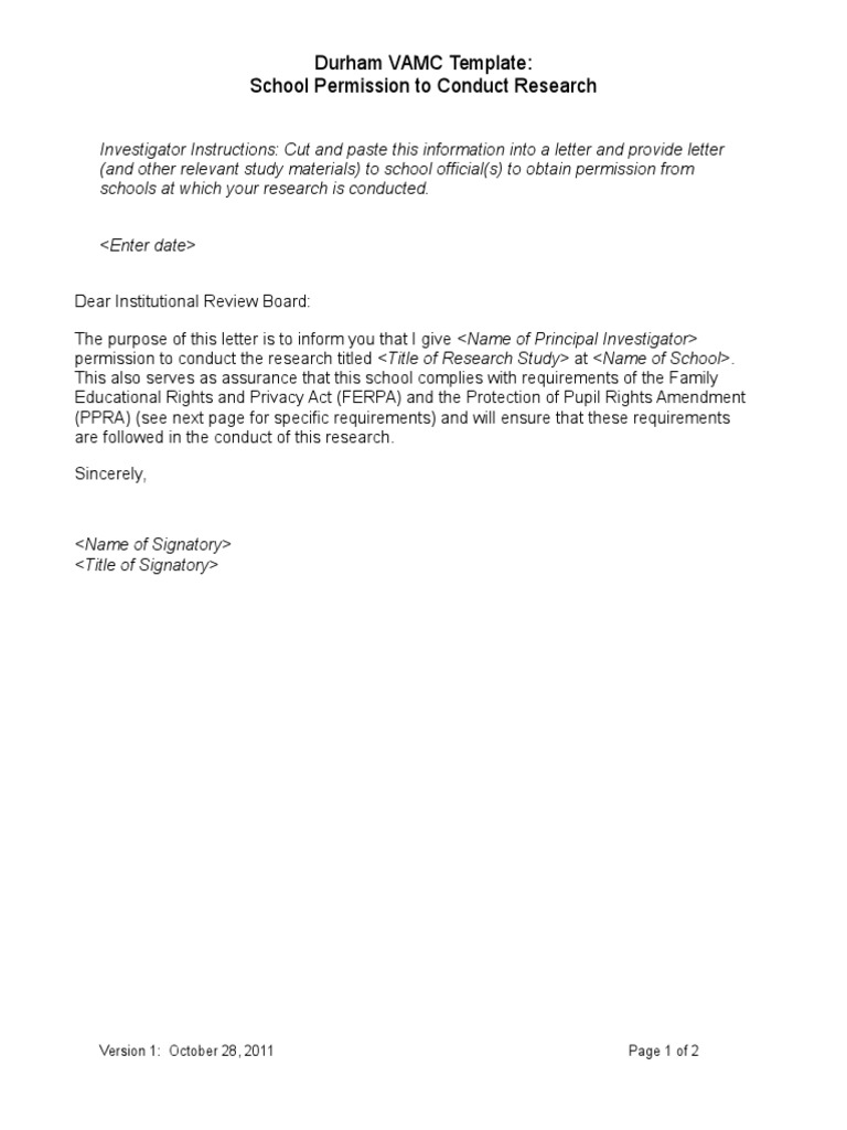 The roosevelt agricultural institute is happy to inform you that your request for permission to conduct research on grain species has been granted. The aim was to conduct the survey with 350 customers of. Our contact details are as follows: In connection with this, we would like to ask your good office to allow us to use your materials as one of our references and to conduct our survey and interview in your vicinity. Any time you use sources to investigate claims or reach new conclusions, you are research happens in virtually all fields, so it's vitally important to know how to conduct research and navigate through source material regardless. Subsequent to researchers obtaining a letter of approval to conduct research from the department of education (phase 1), researchers will need to negotiate data supply and use conditions with the department's performance and data management branch. Research isn't something that only scientists and professors do. The research i wish to conduct for my [e.g. Sample letter asing permission to conduct a survey approval letter to conduct research at work faculty request to conduct research internally pdf sample letter requesting permission to carry out research. / 26+ research paper examples. Make the organization want to help you by how do i write a letter to the principal requesting permission to conduct research in his school? Download 40 free research proposal samples & format. If incomplete, an amended research approval letter may be requested to conduct research in the following year.