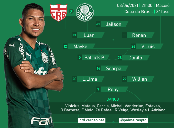 Danilo, patrick de paula e scarpa; Assista hoje dia 03/06/2021 as 21h30 (de brasília) o jogo crb x palmeiras na copa do brasil ao vivo em hd aqui no top canais! Claudinei, marthã e diego torres palmeiras: Mayke, felipe melo, patrick de paula, raphael. O crb não vai poder contar com um jogador importante, o volante wesley após ser derrotado pelo flamengo na estreia do brasileirão 2021, o palmeiras, que é o atual campeão da copa do brasil.